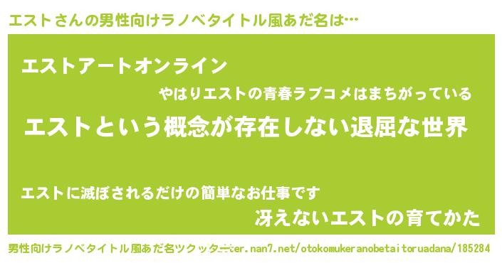| ヘコむあだ名 | 『エスト(笑)』『エスにゅー』 |