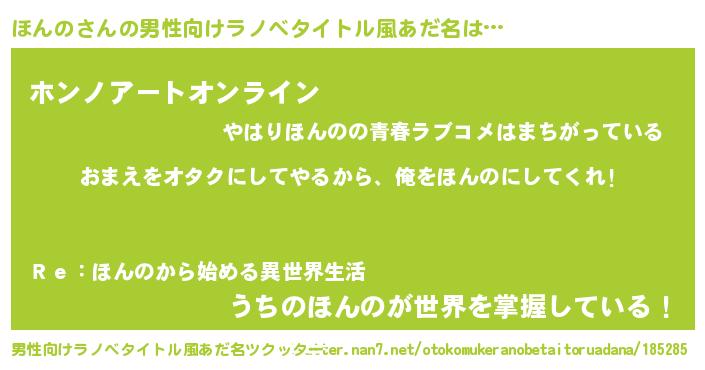 | 女子向けラノベタイトル風あだ名 | 『ほんの恋絵巻』『ほんの伯爵の花嫁』 |