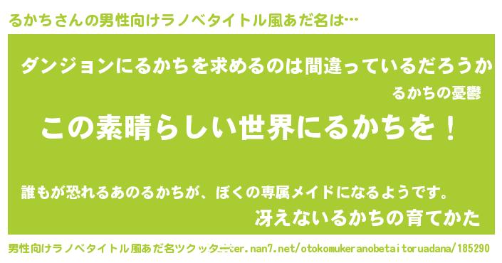 | 女子向けラノベタイトル風あだ名 | 『乙女ゲームの破滅フラグしかない悪役るかちに転生してしまった…』 |