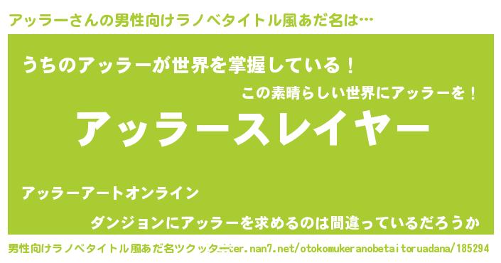 | ヒーロー風カッコイイあだ名 | 『黄金騎士アッ』『仮面アッダー』 |