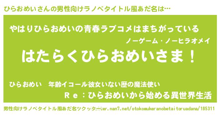 | 意味不明あだ名 | 『ひらおめいフォーエバー』 |