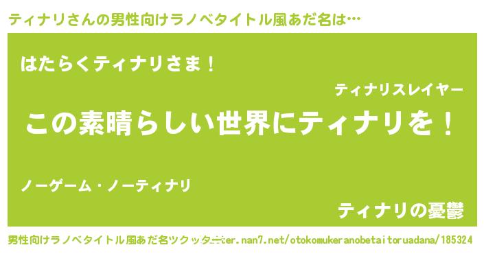 | 意味不明あだ名 | 『住所不定無職ティナリ(13歳)』 |