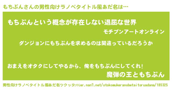 | ヒーロー風カッコイイあだ名 | 『暗黒騎士モチ』『ネオモチプン』 |