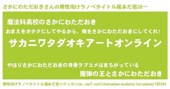 | 胡散臭い通販商品みたいなあだ名 | 『モテモテ間違いなしブレスレット…その名も「さかにわただおき」』 |