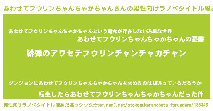| 胡散臭い通販商品みたいなあだ名 | 『絶対に幸福をもたらす水素水…その名も「あわせてフウリンちゃんちゃかちゃん」』 |