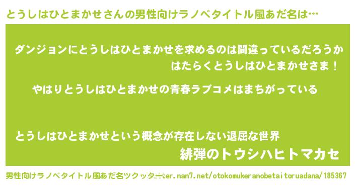| 意味不明あだ名 | 『とうしはひとまかせフォーエバー』 |