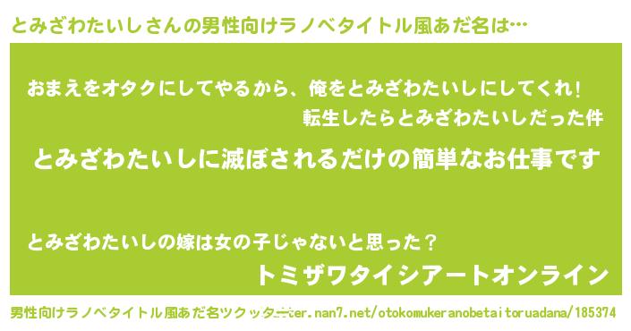 | 伝説のあだ名 | 『救世主となる占い師とみざわたいし』 |