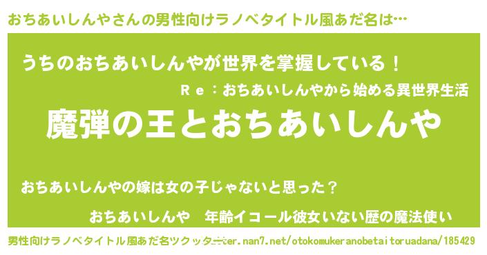 | 胡散臭い通販商品みたいなあだ名 | 『世界中を虜にした世界で10本だけ現存している希少なブランデー…その名も「おちあいしんや」』 |