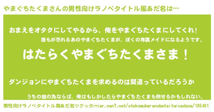 | 胡散臭い通販商品みたいなあだ名 | 『100人中100人が認めたマグネット磁石…その名も「やまぐちたくま」』 |