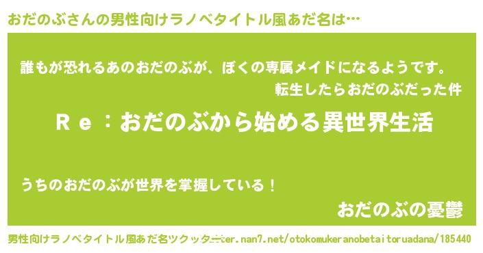 | 女子向けラノベタイトル風あだ名 | 『おだのぶストレイドッグス』 |