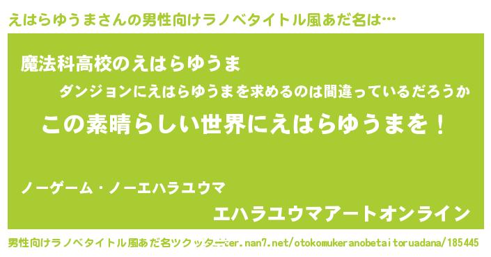 | 意味不明あだ名 | 『住所不定無職えはらゆうま(84歳)』 |