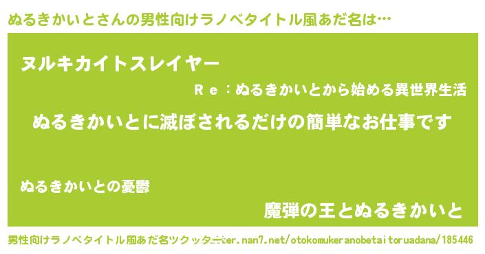 | 胡散臭い通販商品みたいなあだ名 | 『世界中を虜にした100年もののヴィンテージワイン…その名も「ぬるきかいと」』 |