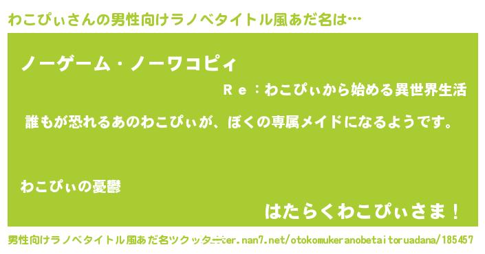 わこぴぃさんの男性向けラノベタイトル風あだ名をツクッター!
