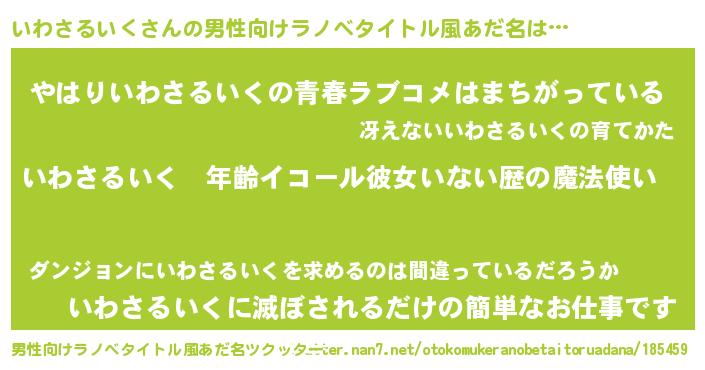 | 女子向けラノベタイトル風あだ名 | 『いわさるいくの玉の輿計画!』 |