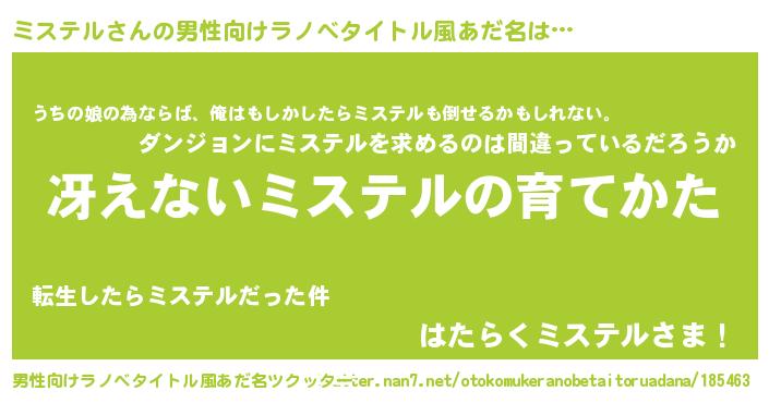 | 女子向けラノベタイトル風あだ名 | 『男装ミステルの憂鬱な任務』 |