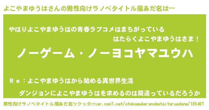 | 女子向けラノベタイトル風あだ名 | 『よこやまゆうは恋絵巻』 |