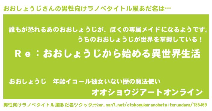 | 女子向けラノベタイトル風あだ名 | 『おおしょうじストレイドッグス』 |