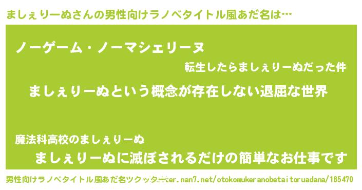 | ヒーロー風カッコイイあだ名 | 『ネオマシェリーヌ』『仮面マシダー』 |