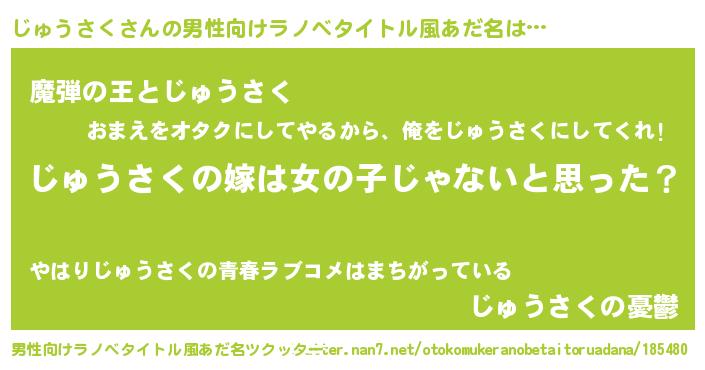 | 意味不明あだ名 | 『とにかく怪しいじゅうさく』 |