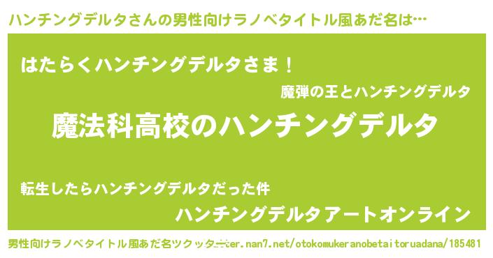 ハンチングデルタさんの男性向けラノベタイトル風あだ名をツクッター!