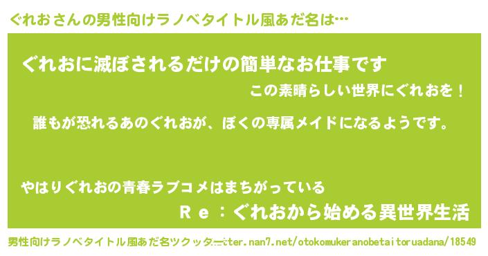 | ヘコむあだ名 | 『ぐれお(小並感)』『レバニラ』 |
