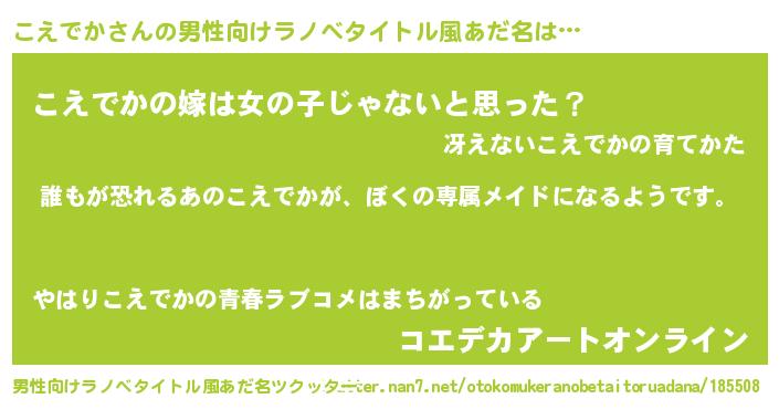 | 女子向けラノベタイトル風あだ名 | 『異世界でカフェこえでかを開店しました。』 |