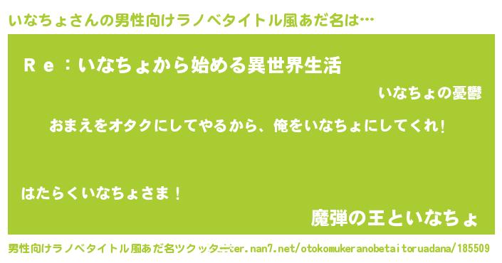 | 女子向けラノベタイトル風あだ名 | 『いなちょ夫妻のなれそめ』 |