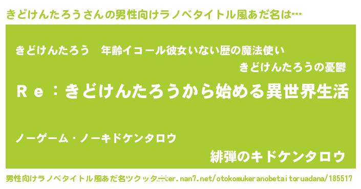 | 女子向けラノベタイトル風あだ名 | 『闇のきどけんたろう』 |