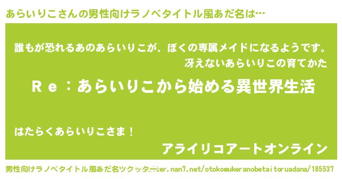 | 女子向けラノベタイトル風あだ名 | 『闇のあらいりこ』 |
