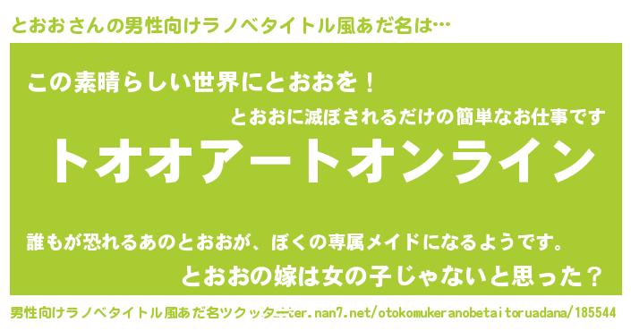 | 女子向けラノベタイトル風あだ名 | 『誰かこのとおおを説明してください! ~契約から始まるウェディング~』 |