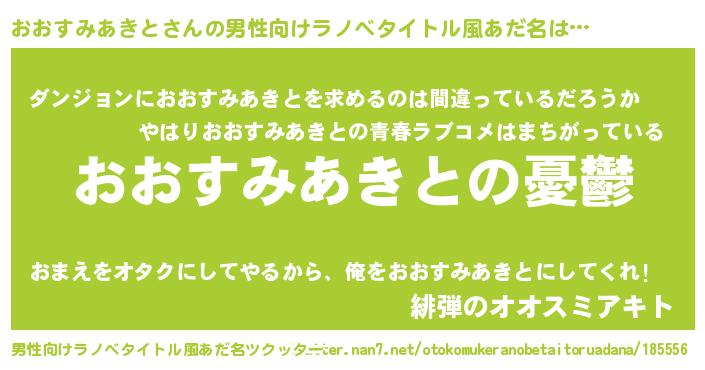 | 胡散臭い通販商品みたいなあだ名 | 『モテモテ間違いなし水晶球…その名も「おおすみあきと」』 |