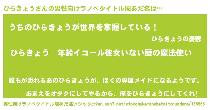 | 女子向けラノベタイトル風あだ名 | 『ひらきょうの玉の輿計画!』 |
