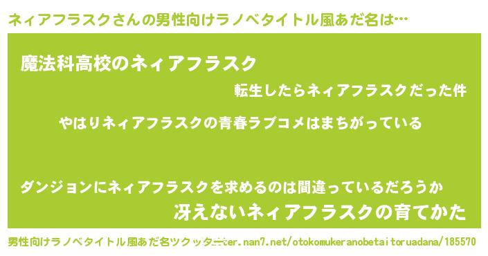| 女子向けラノベタイトル風あだ名 | 『ネィアフラスクの雑貨屋さん』 |