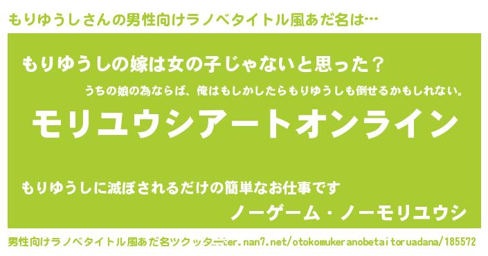 | 女子向けラノベタイトル風あだ名 | 『誰かこのもりゆうしを説明してください! ~契約から始まるウェディング~』 |