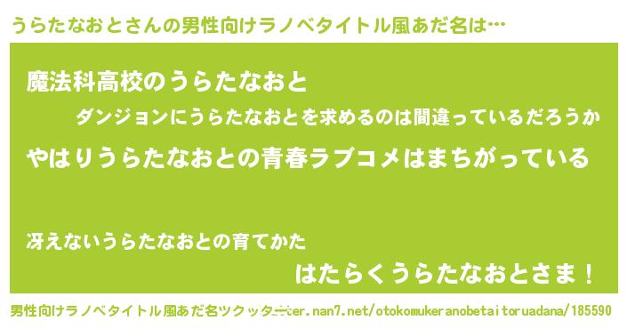 | 女子向けラノベタイトル風あだ名 | 『うらたなおとの雑貨屋さん』 |