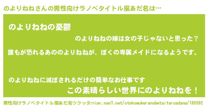 | ヘコむあだ名 | 『のよりねね(小並感)』『のよもー』 |