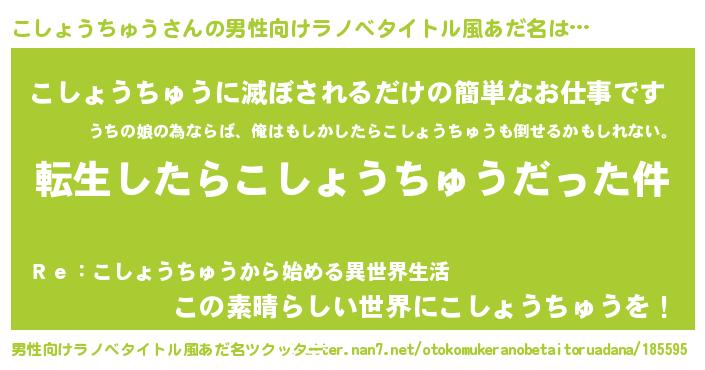 | 意味不明あだ名 | 『なめこ科こしょうちゅう属』 |