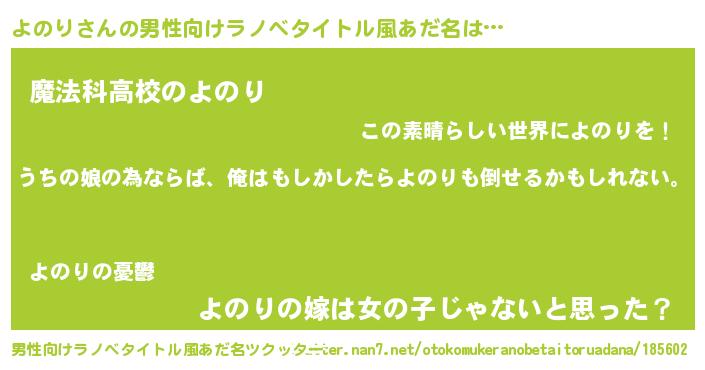 | 女子向けラノベタイトル風あだ名 | 『よのりの婚約者』『よのり様がみてる』 |