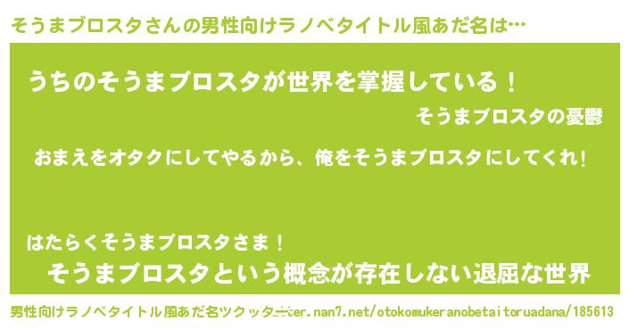 | 女子向けラノベタイトル風あだ名 | 『そうまブロスタ恋絵巻』 |