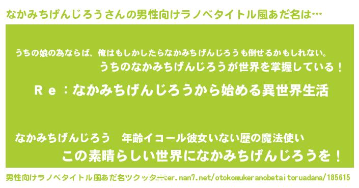 なかみちげんじろうさんの男性向けラノベタイトル風あだ名をツクッター!