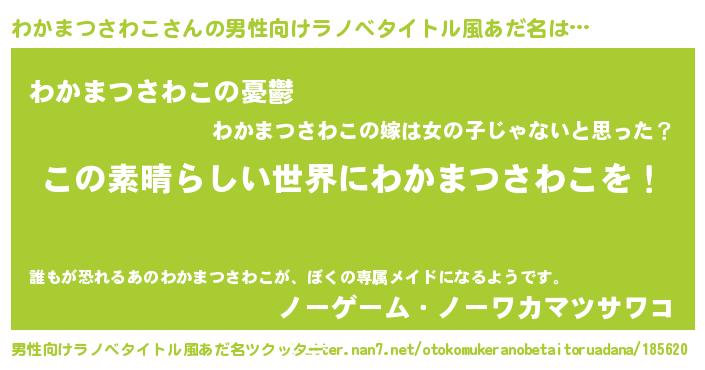 | 女子向けラノベタイトル風あだ名 | 『悪役わかまつさわこに転生したようですが、知った事ではありません』 |