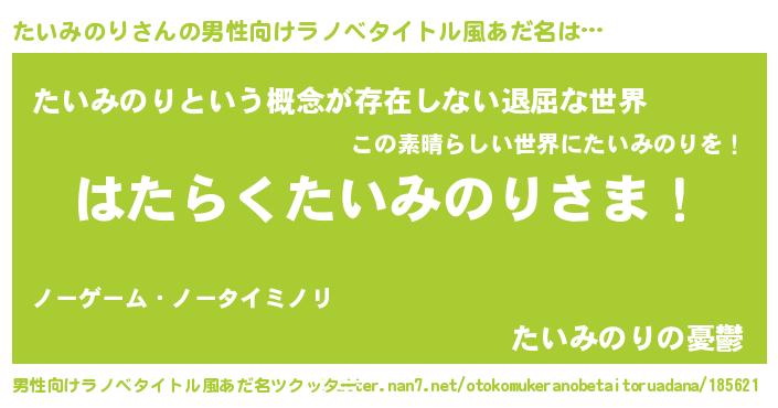 | 胡散臭い通販商品みたいなあだ名 | 『絶対に幸福をもたらす健康食品…その名も「たいみのり」』 |