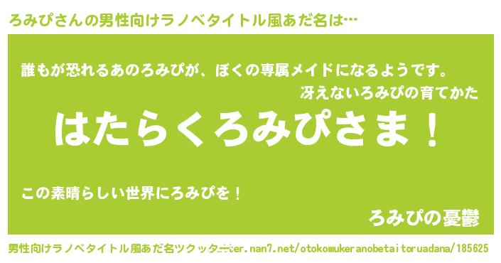 | ヘコむあだ名 | 『ろみぴ(笑)』『ろみにー』『豆乳』 |