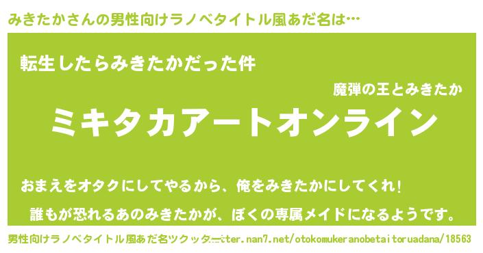 | 胡散臭い通販商品みたいなあだ名 | 『モテモテ間違いなし水晶球…その名も「みきたか」』 |