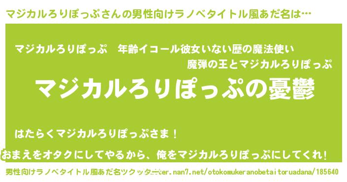 | 女子向けラノベタイトル風あだ名 | 『(仮)マジカルろりぽっぷのやんごとなき事情』 |