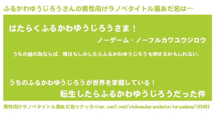 | 女子向けラノベタイトル風あだ名 | 『ふるかわゆうじろう伯爵の花嫁』 |