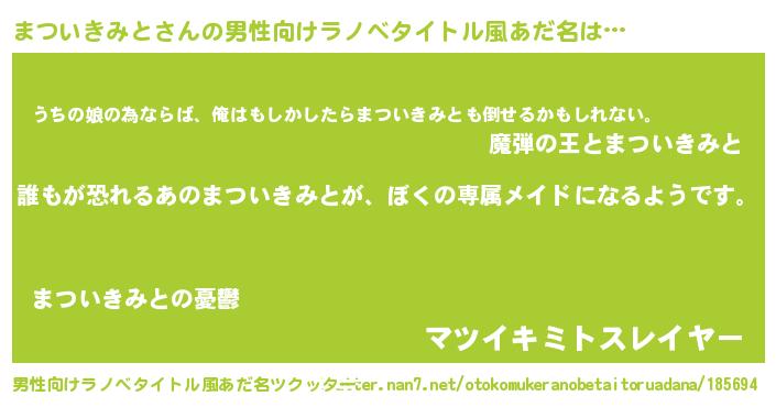| 女子向けラノベタイトル風あだ名 | 『異世界でカフェまついきみとを開店しました。』 |