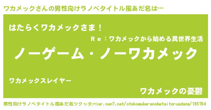 | ヒーロー風カッコイイあだ名 | 『愛の使者ワカメック』『仮面ワカダー』 |