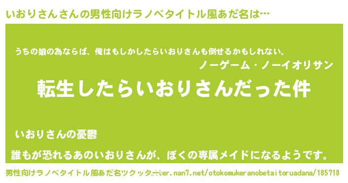 | 女子向けラノベタイトル風あだ名 | 『いおりさんの玉の輿計画!』 |