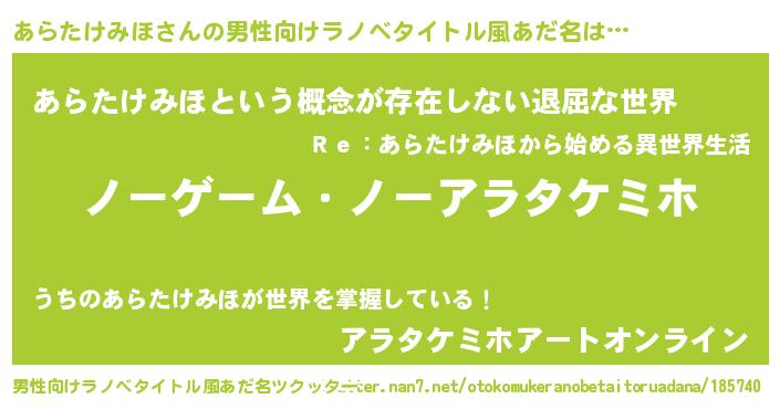 | 女子向けラノベタイトル風あだ名 | 『死神あらたけみほの再婚』 |